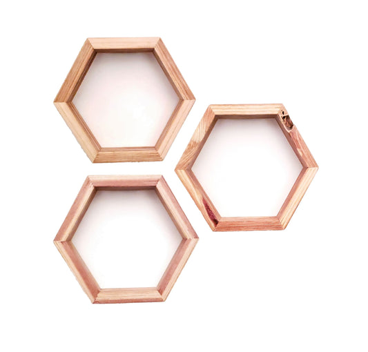 Honeycomb (Hexagon) Shelves | 3 Inches | Handmade from Redwood | SMALL