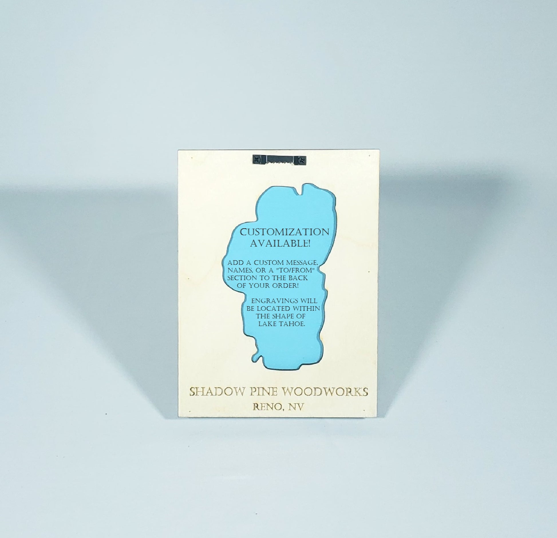This Lake Tahoe inspired art piece is constructed with 2 layers of wood cut and painted to showcase a dramatic color fade in the negative space of Lake Tahoe's iconic shoreline. This wall hang is a perfect fit for anyone looking to showcase their love for the outdoors, art, and the stunning Lake Tahoe basin. There are several other color options in my store, and I can also create a custom color combination upon request (more info on custom work and inventory below).