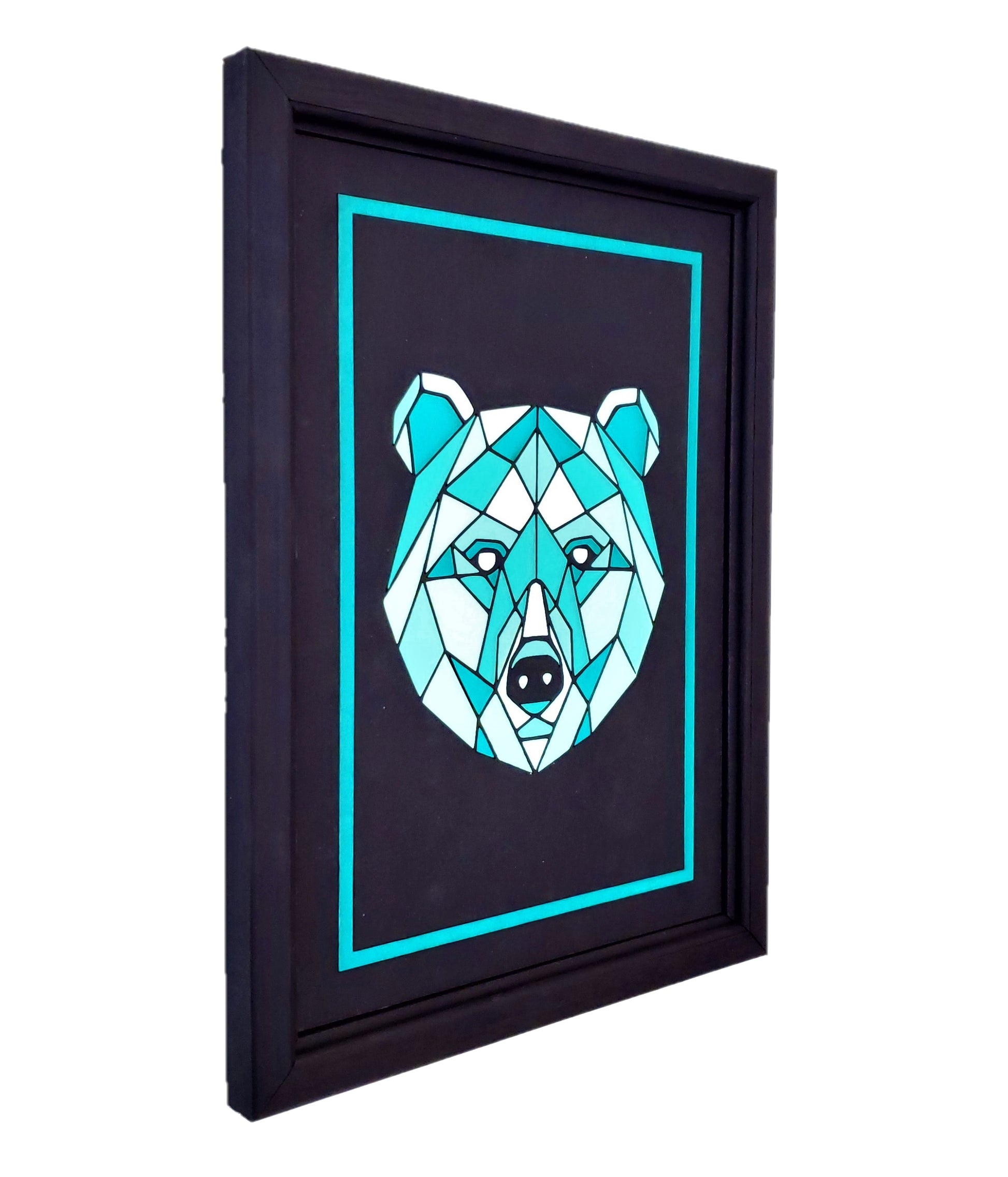 These geometric animal pieces are constructed with 2 layers of wood burned and stained to create a geometric representation Bear. This wall hang is a perfect fit for anyone looking to show their love for the animals, art, and the outdoors.