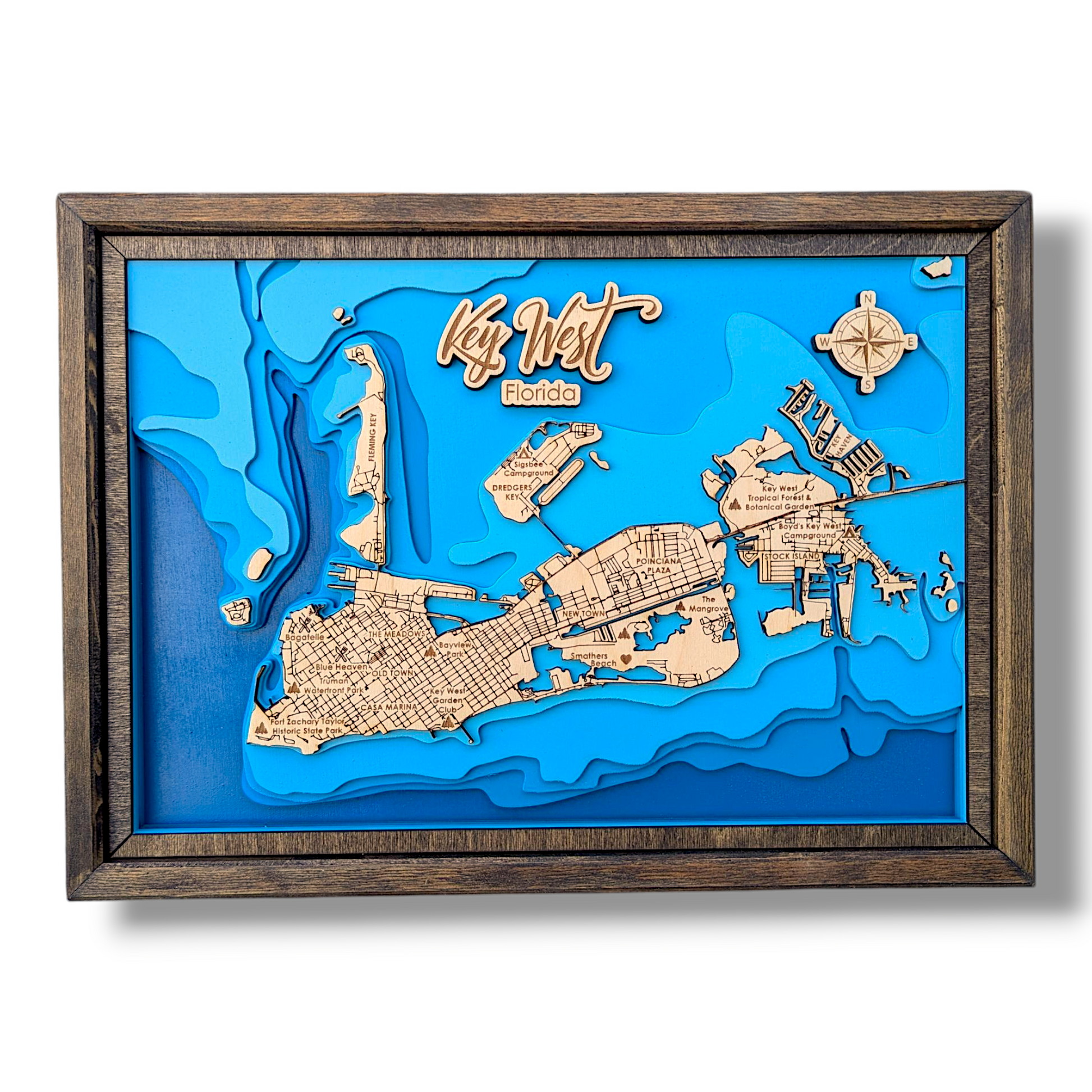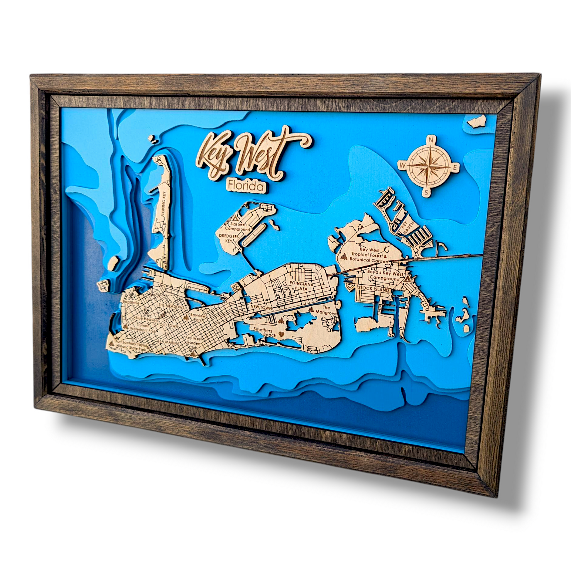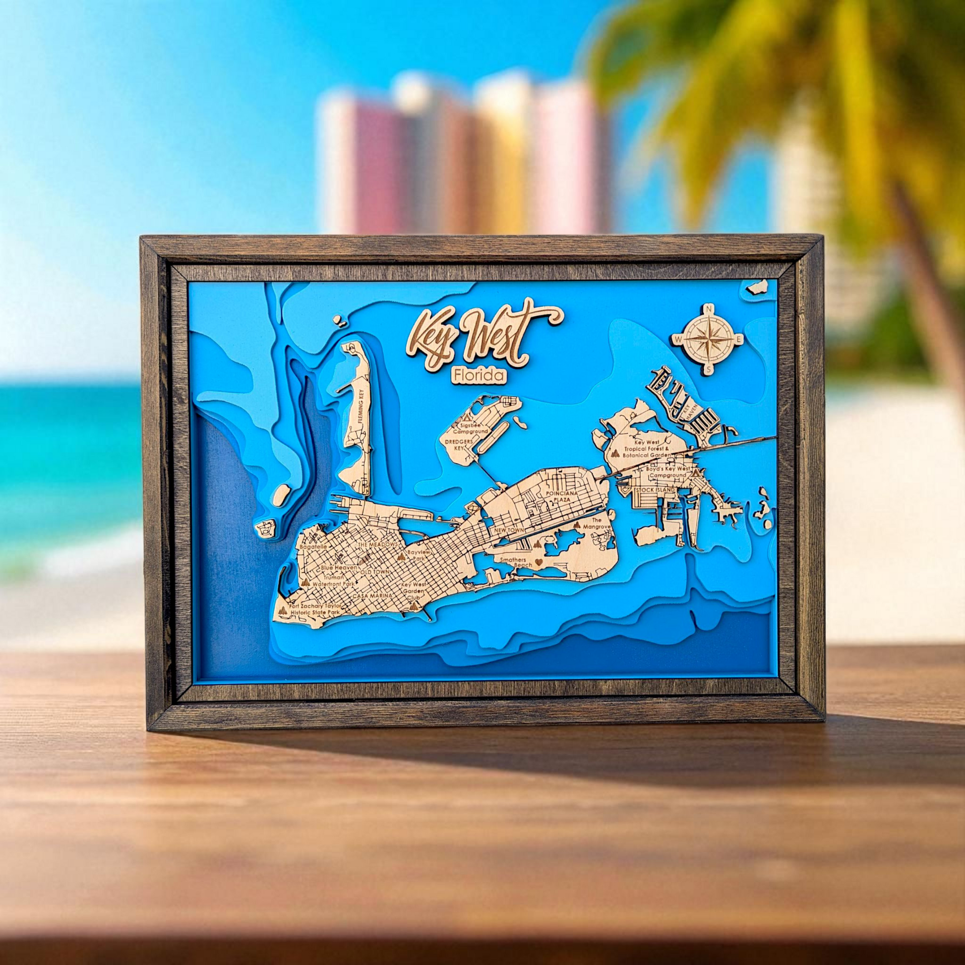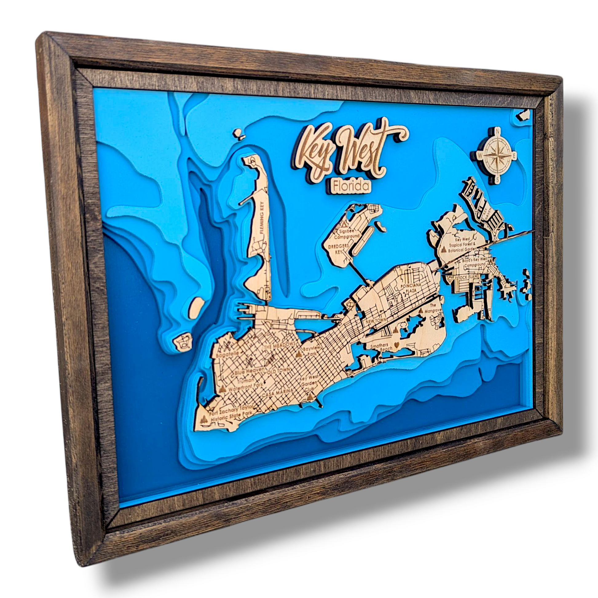 Precision Laser Cutting Expertly crafted from eco-friendly hardwood, each map showcases Key West’s bathymetric details with exceptional clarity and artistry.