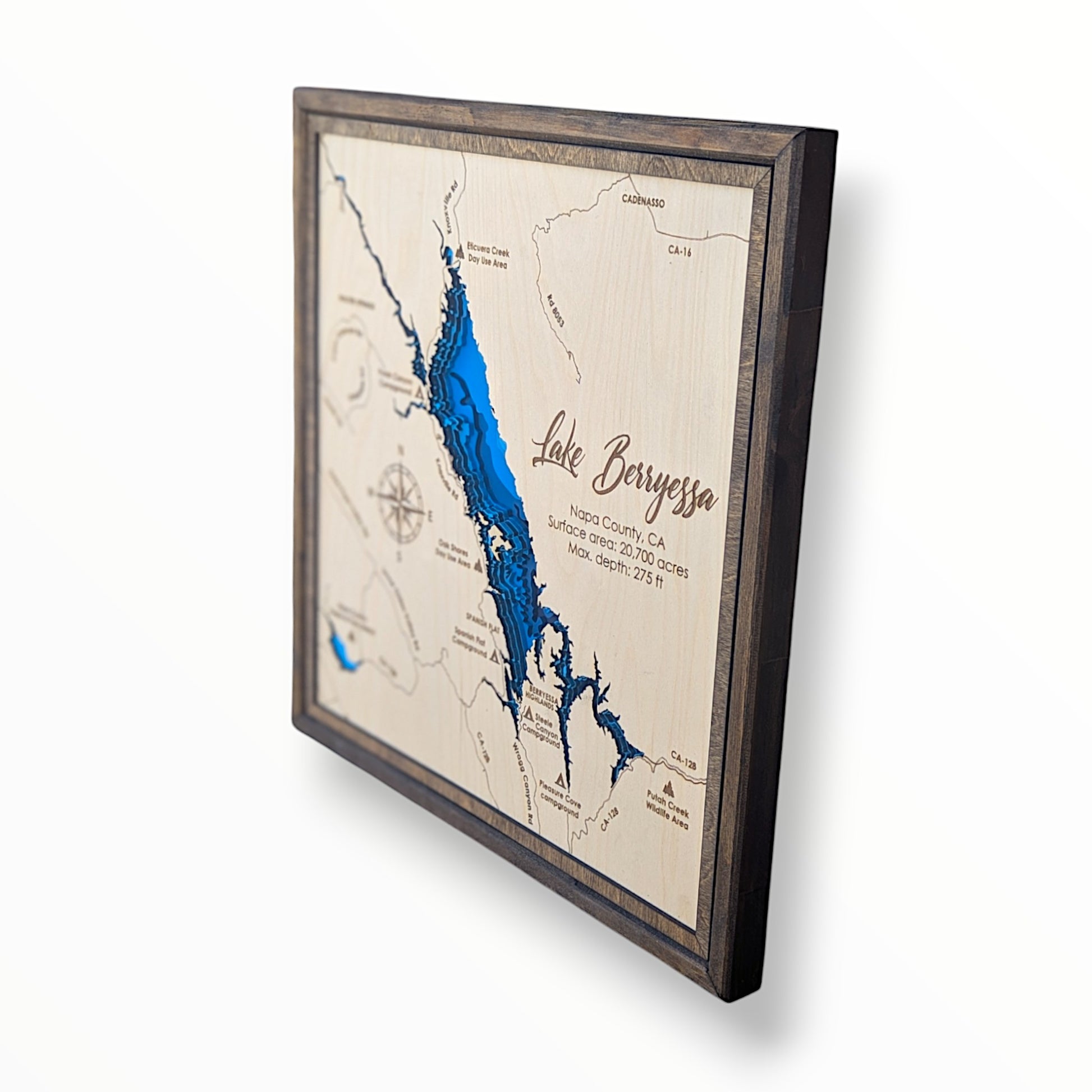 Precision Laser Cutting: Crafted with care from sustainable, high-quality wood, this map features crisp, precise contours that reveal Lake Berryessa’s distinctive underwater features.