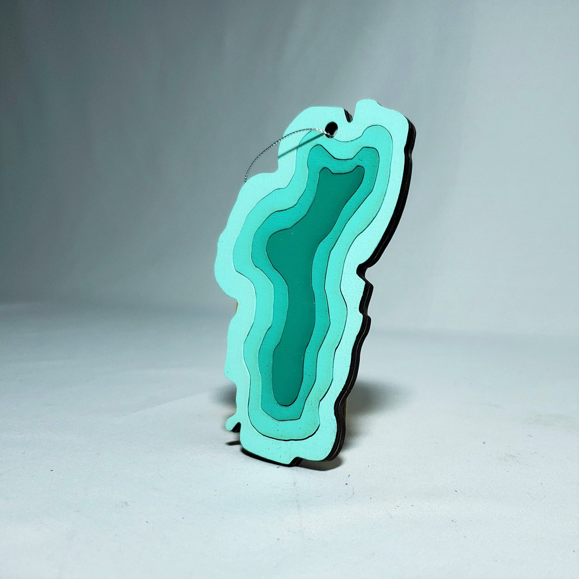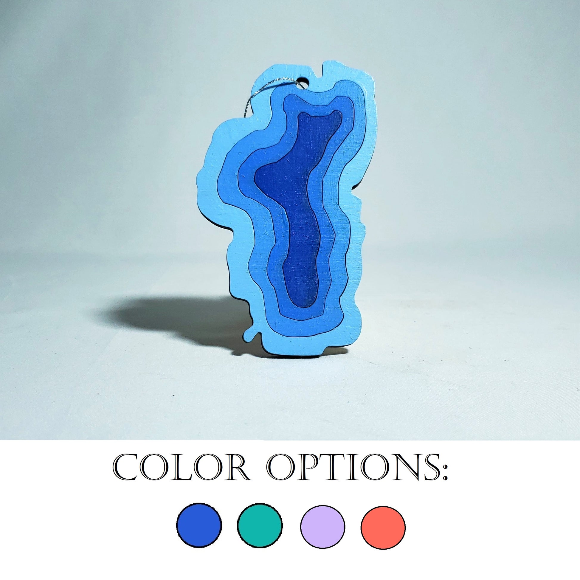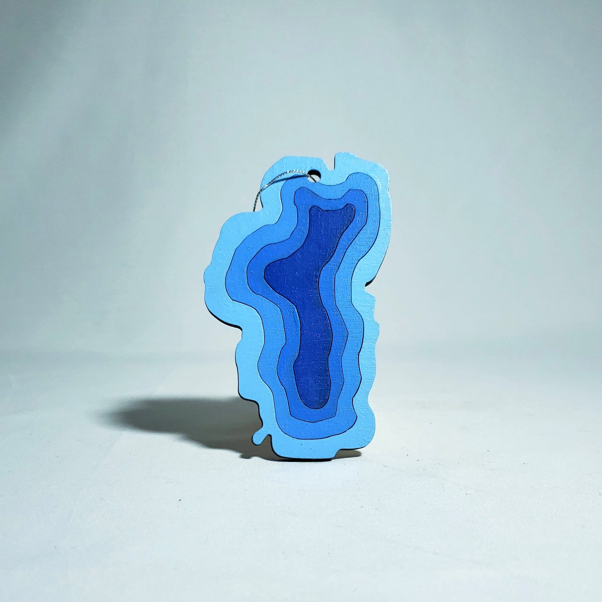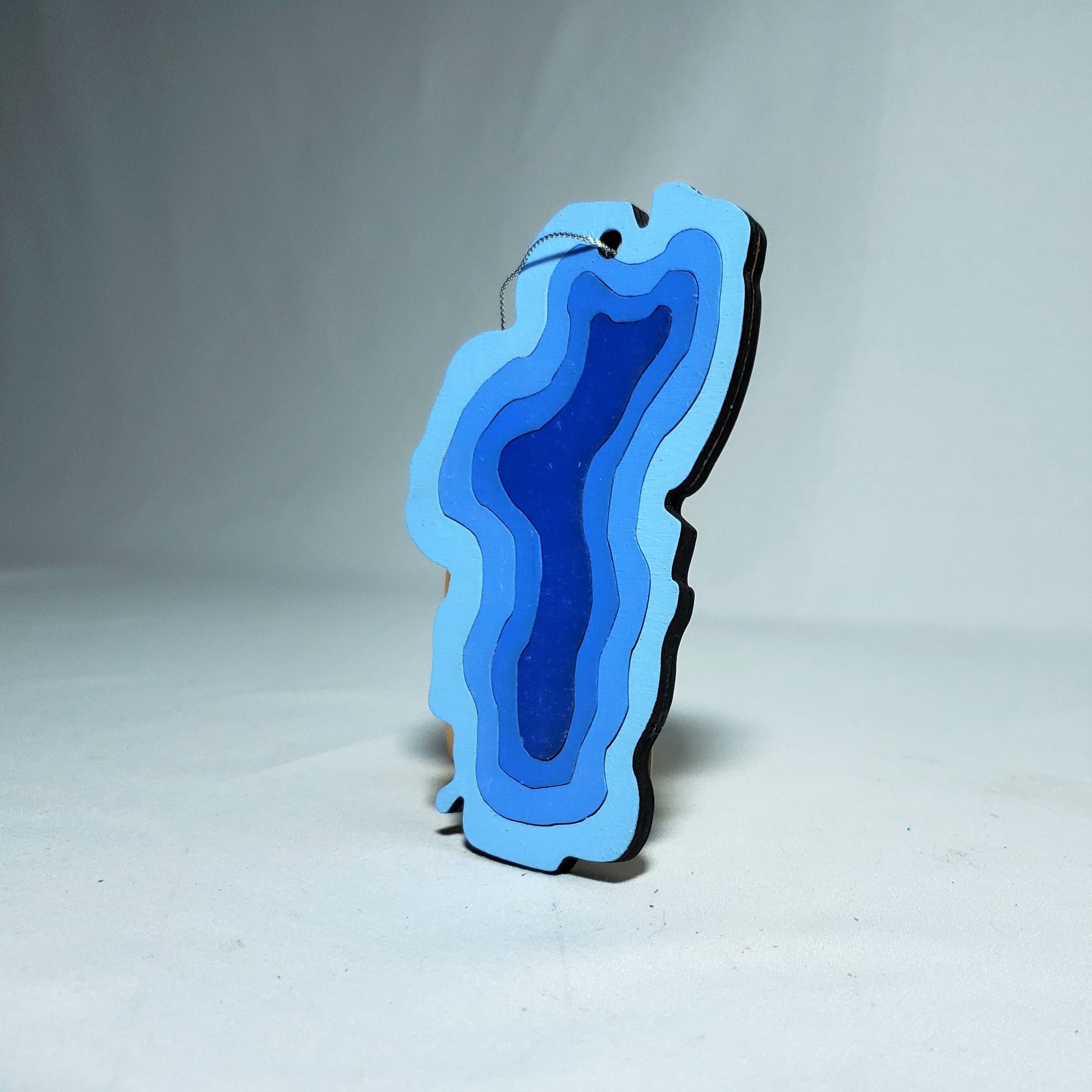 This small decorative wall hang or ornament is created using 1 layer of wood cut into rings to mimic the iconic shape of the Lake Tahoe along with some depth rings. This wall hang is a perfect fit for anyone looking to showcase their love for Lake Tahoe.