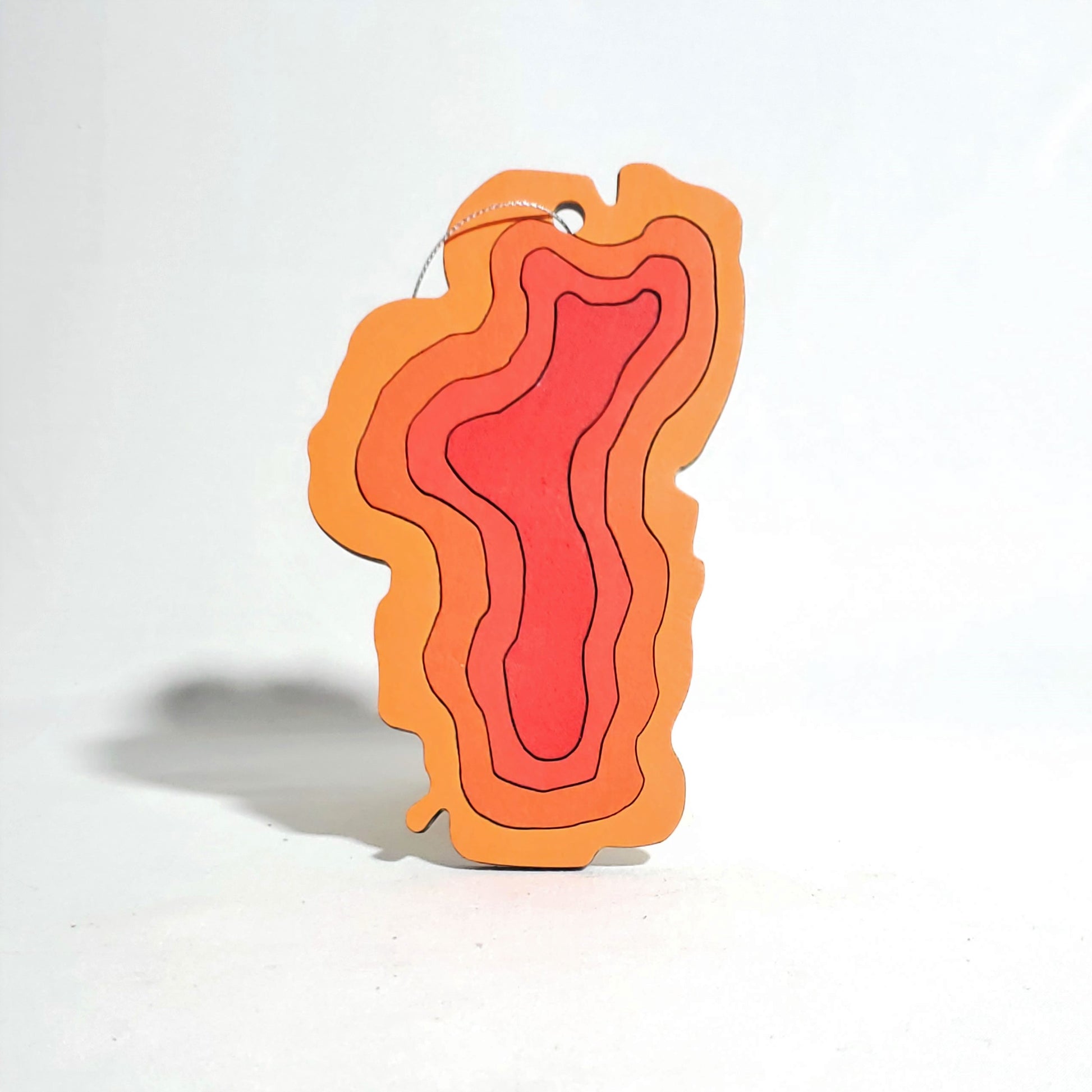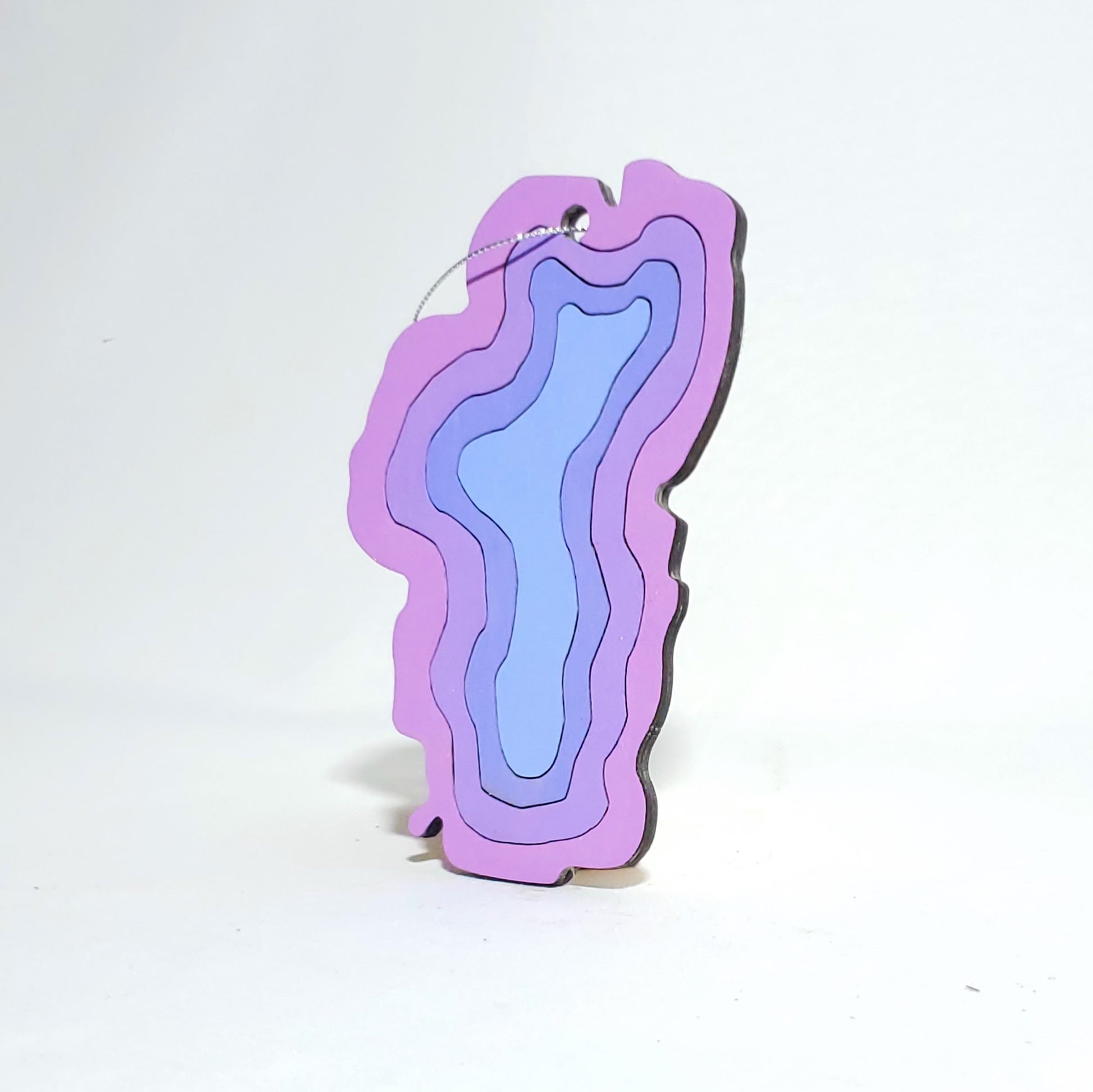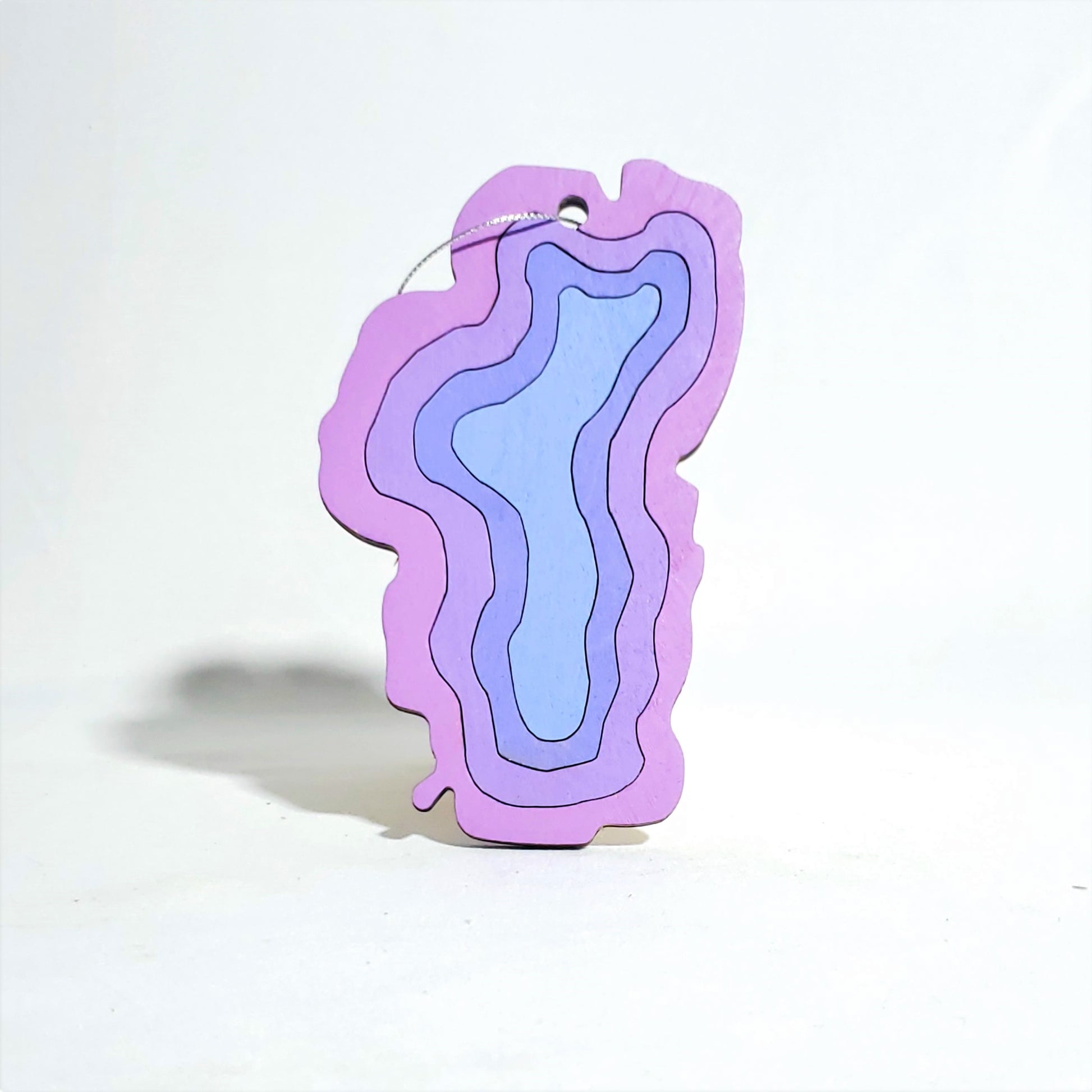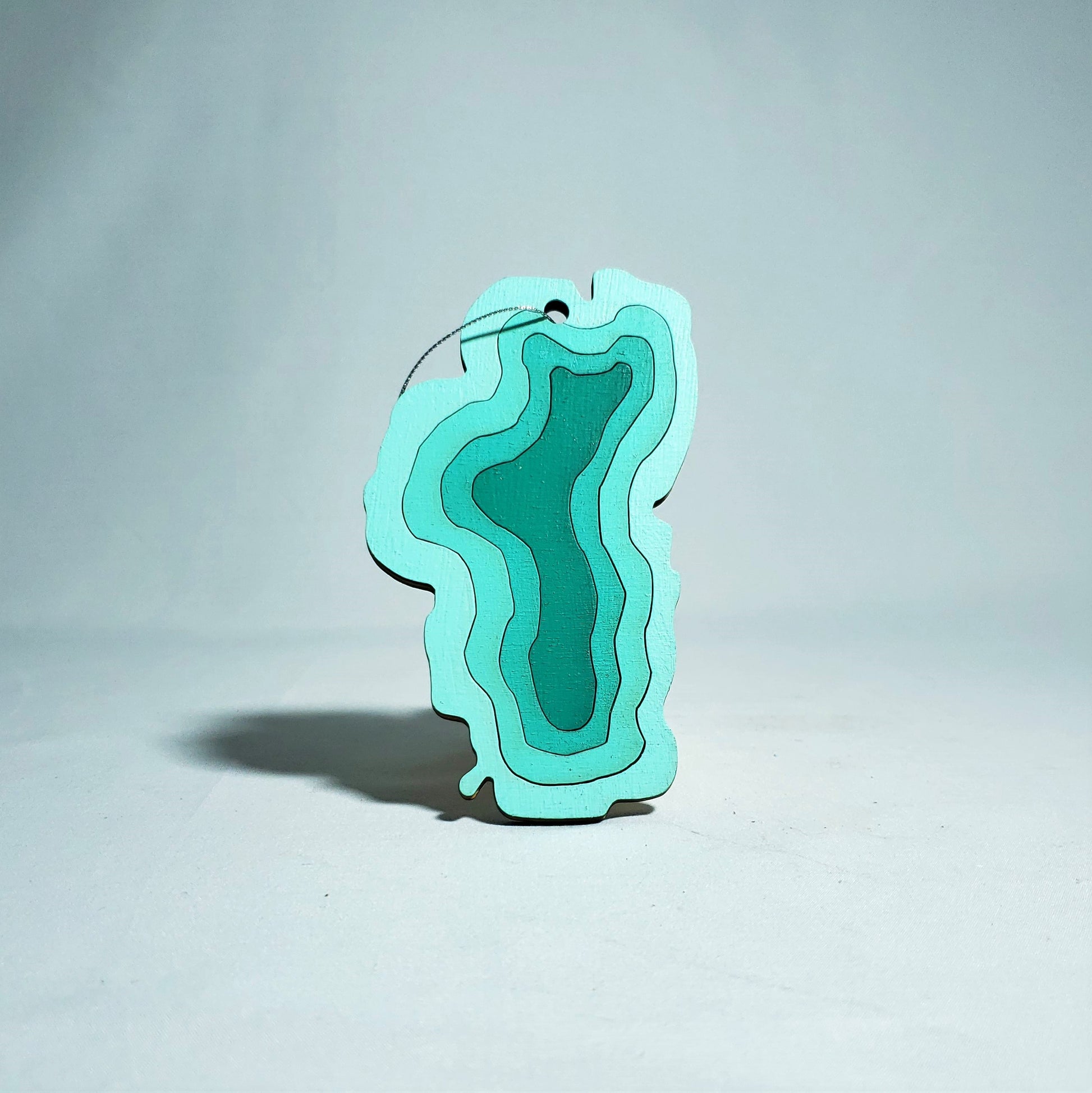 This small decorative wall hang or ornament is created using 1 layer of wood cut into rings to mimic the iconic shape of the Lake Tahoe along with some depth rings. This wall hang is a perfect fit for anyone looking to showcase their love for Lake Tahoe.