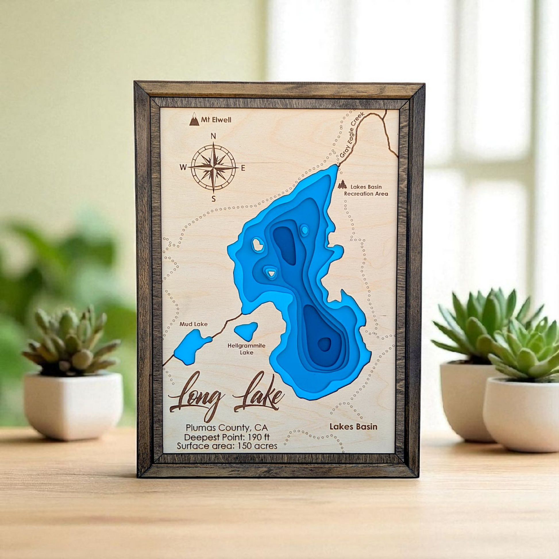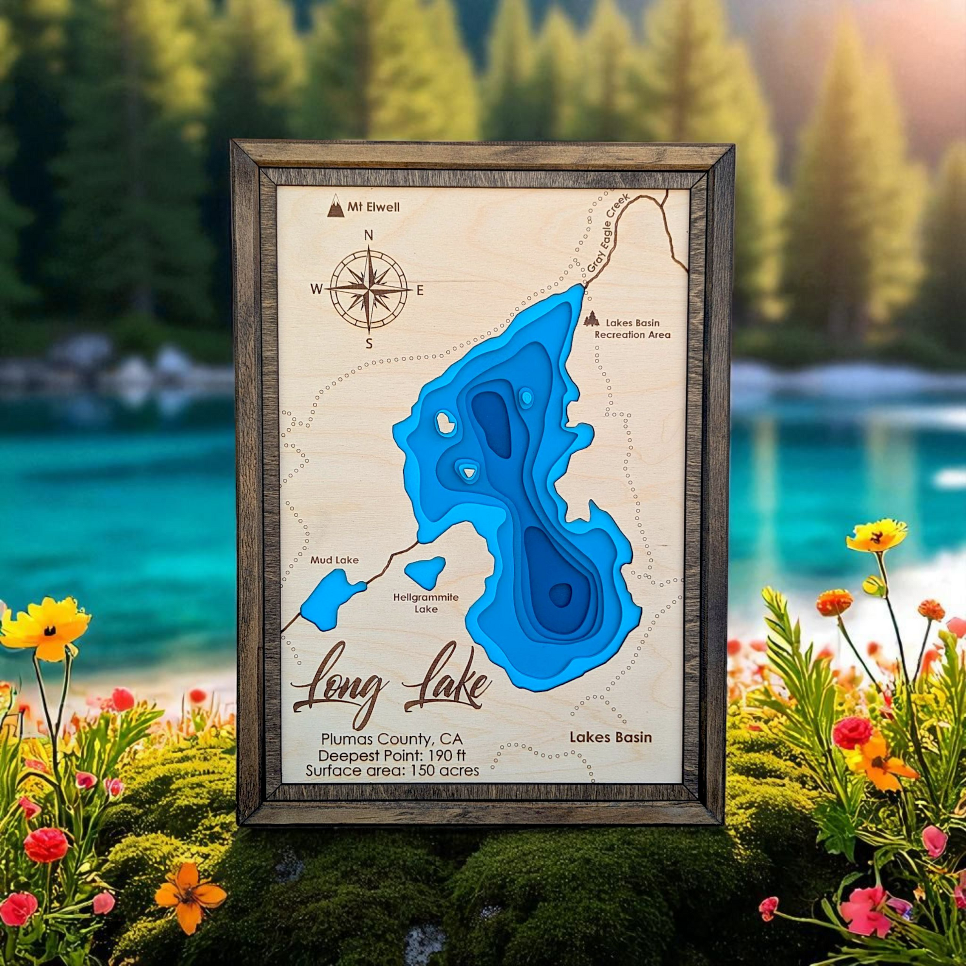Bring the quiet magic of Long Lake into your space with this handcrafted bathymetry map. It’s more than a piece of art—it’s a celebration of California’s alpine serenity.