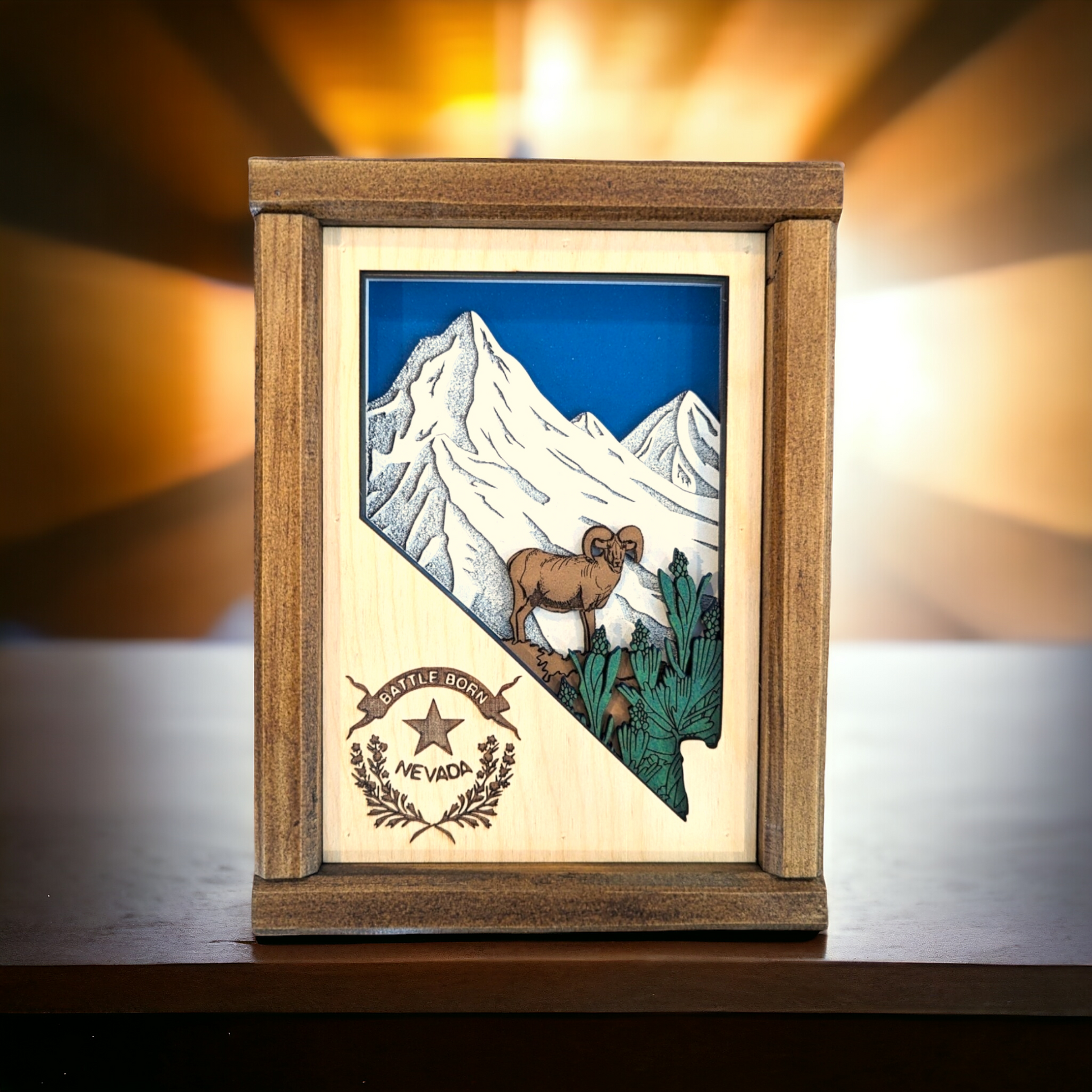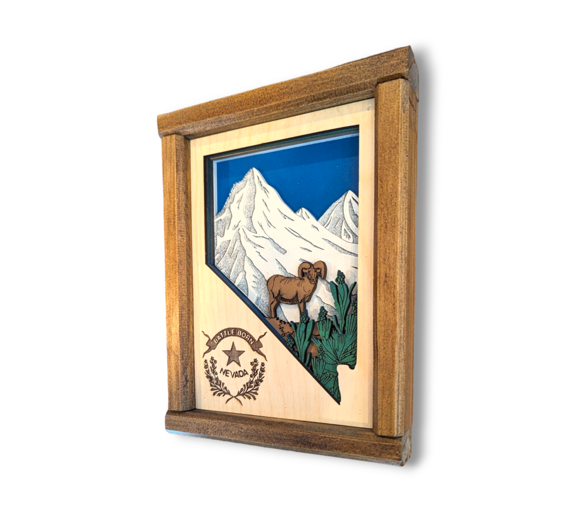This Nevada-inspired piece is constructed with 5 layers of wood cut and painted to showcase an epic landscape within Nevada's iconic shape. This wall hang is a perfect fit for anyone looking to showcase their love for the great state of Nevada! I can create a custom color combination for this piece upon request (more info on custom work and inventory below).