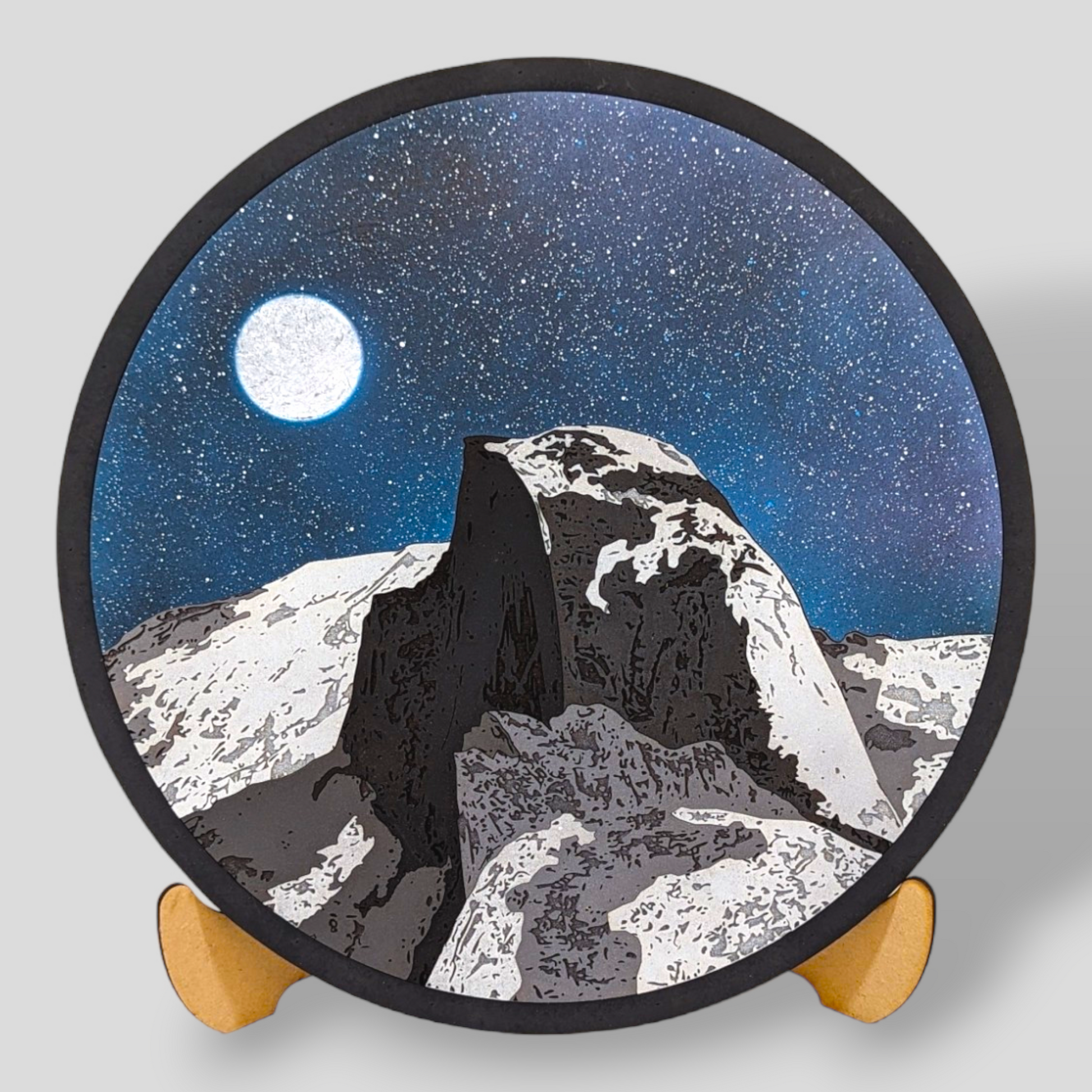 This realistic mountain wood art is constructed with 3 layer of wood. The image was laser cut/engraved, painted, and stained to create a 3-dimensional recreation of Half Dome in the Yosemite Valley. This wall hang is a perfect fit for anyone looking to show their love for the mountains, art, and the outdoors.
