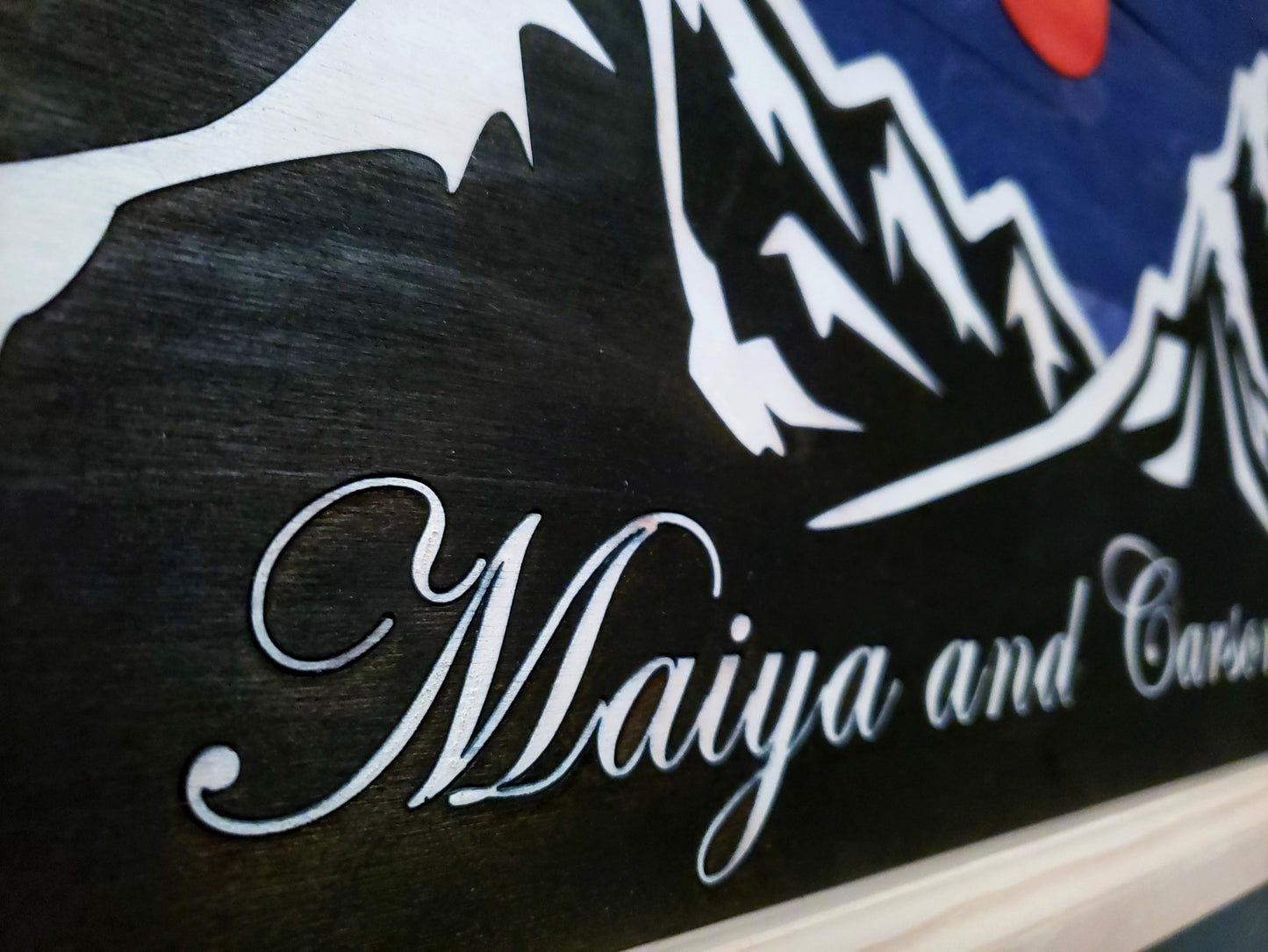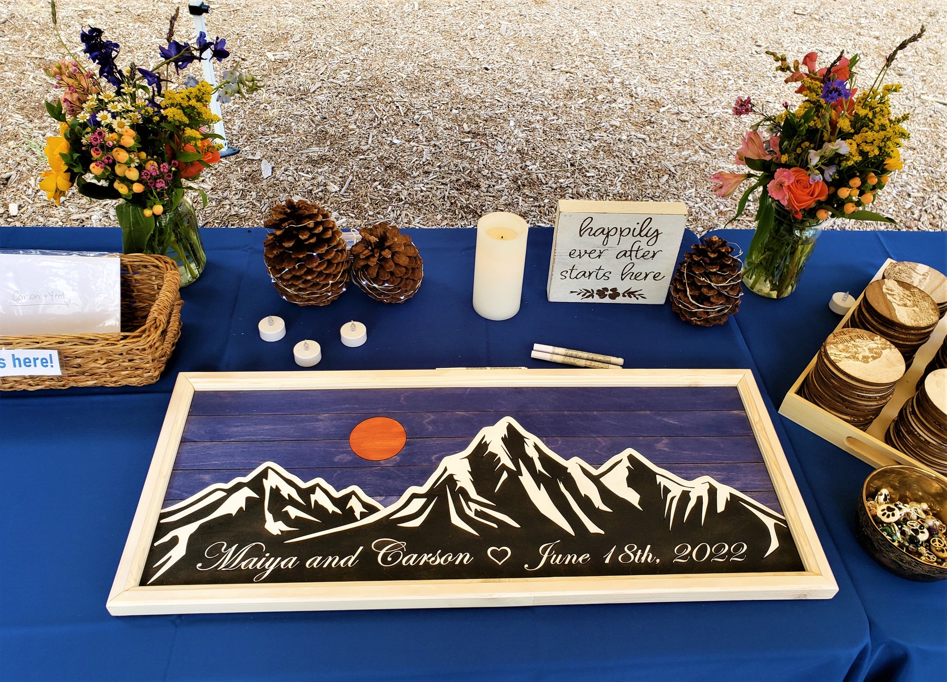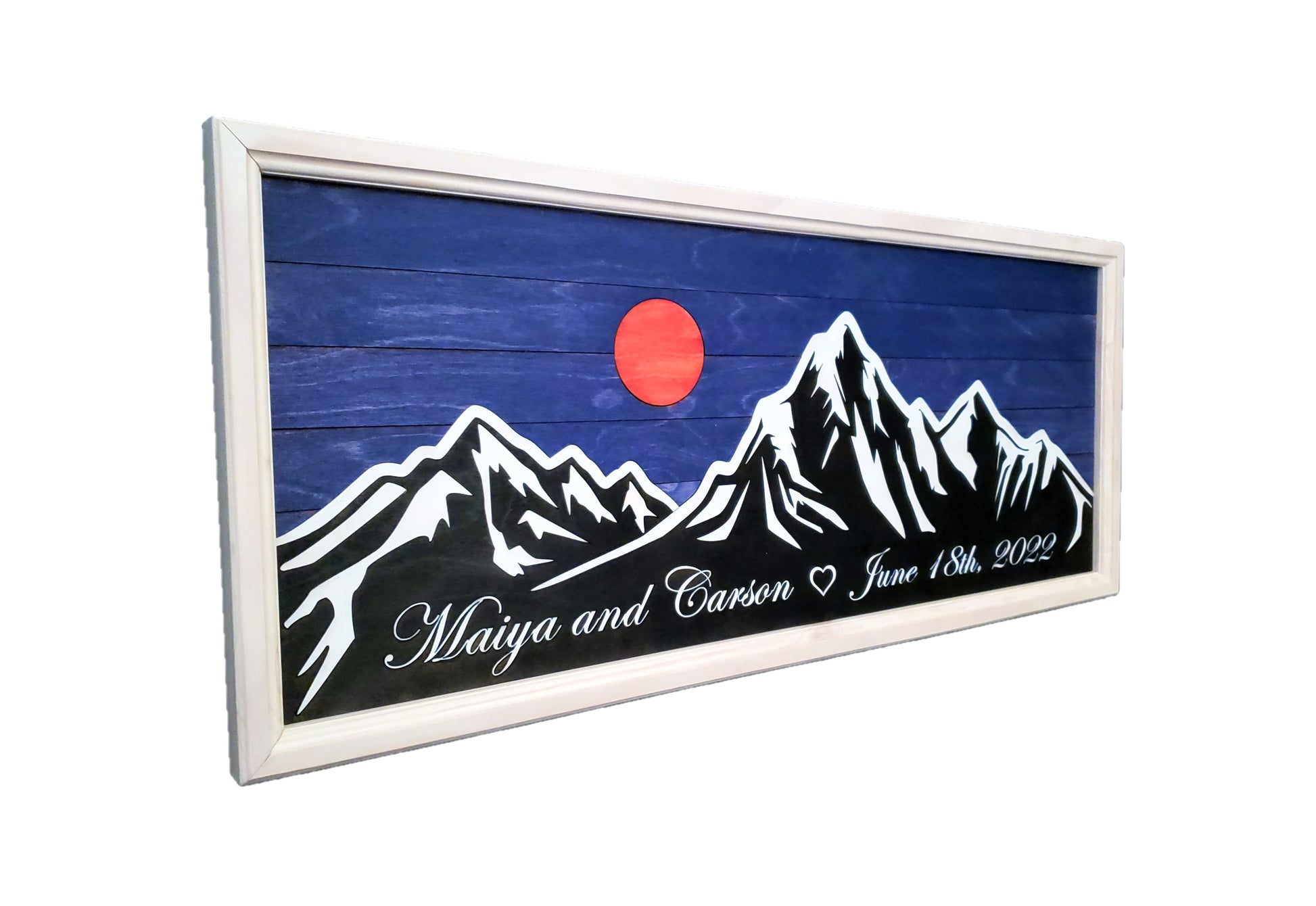 These mountain wedding guest books are artfully crafted to ensure your wedding guest messages are preserved and displayed in the most beautiful way possible. They are laser cut to ensure perfectly inlaid wood providing a smooth and even surface for guest signatures. These wall hands are a perfect fit for anyone looking to show their love for the mountains, art, and the outdoors.