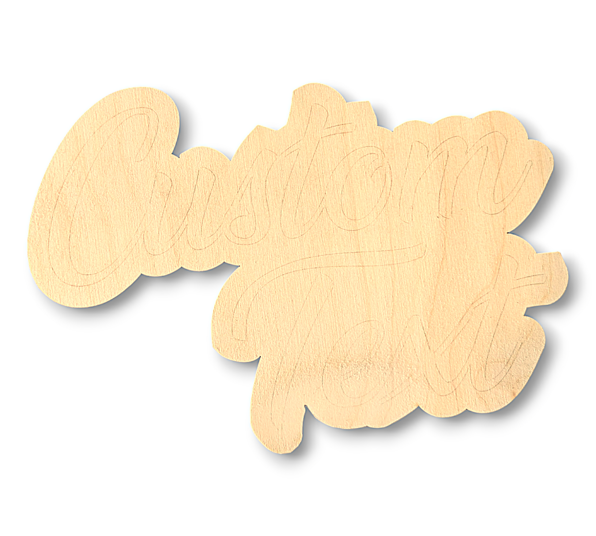 - Note: for specific size requests (including larger sized text), please contact me via the Custom Wood Blank Submittal Form.
